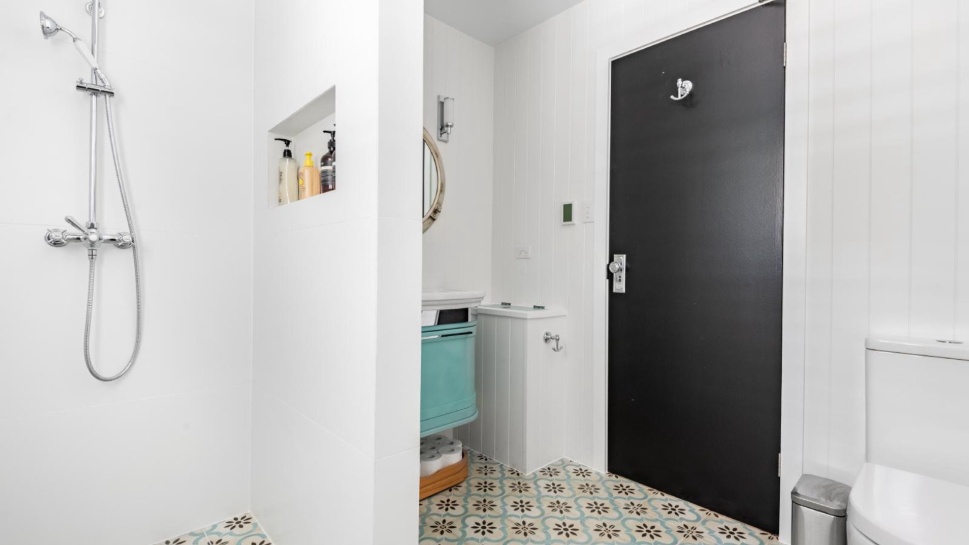 - Main bathroom with shower only, modern fittings; separate toilet, full laundry. Cabin