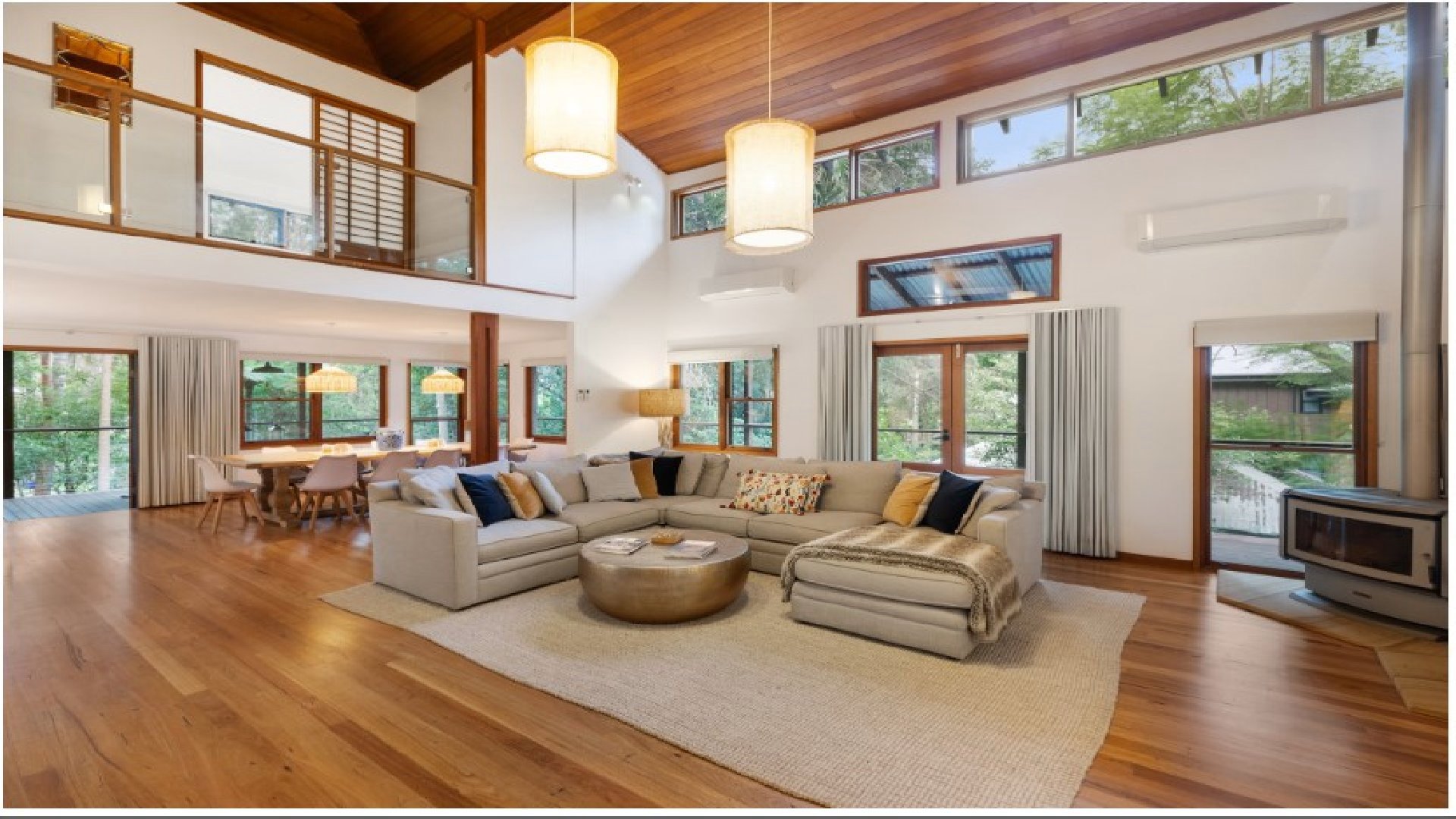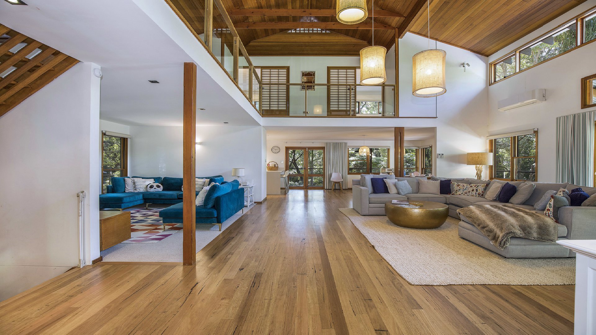 This architecturally designed home features stunning high-loft ceilings, natural timbers and wide open spaces with comfortable furnishings to suit.