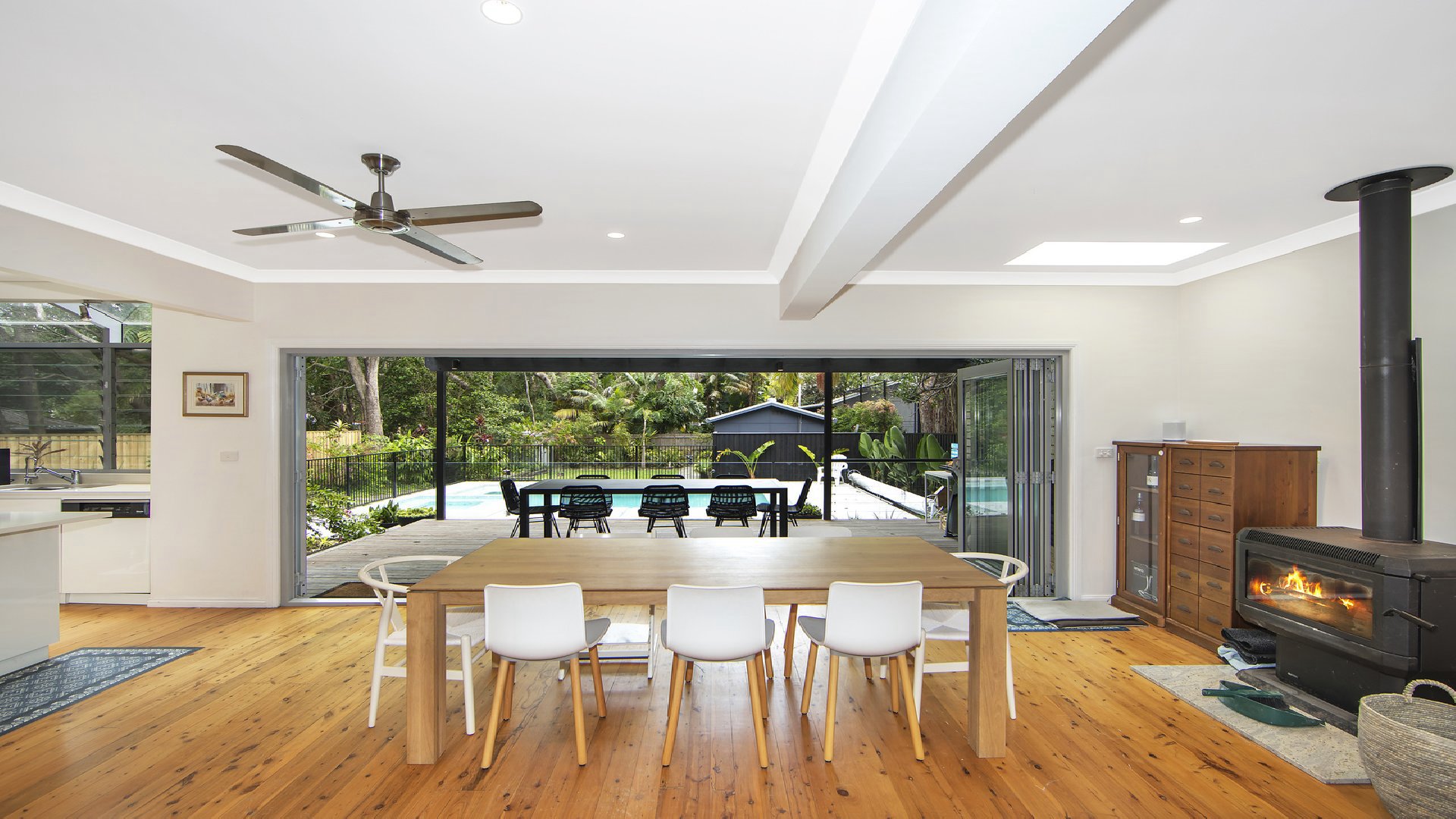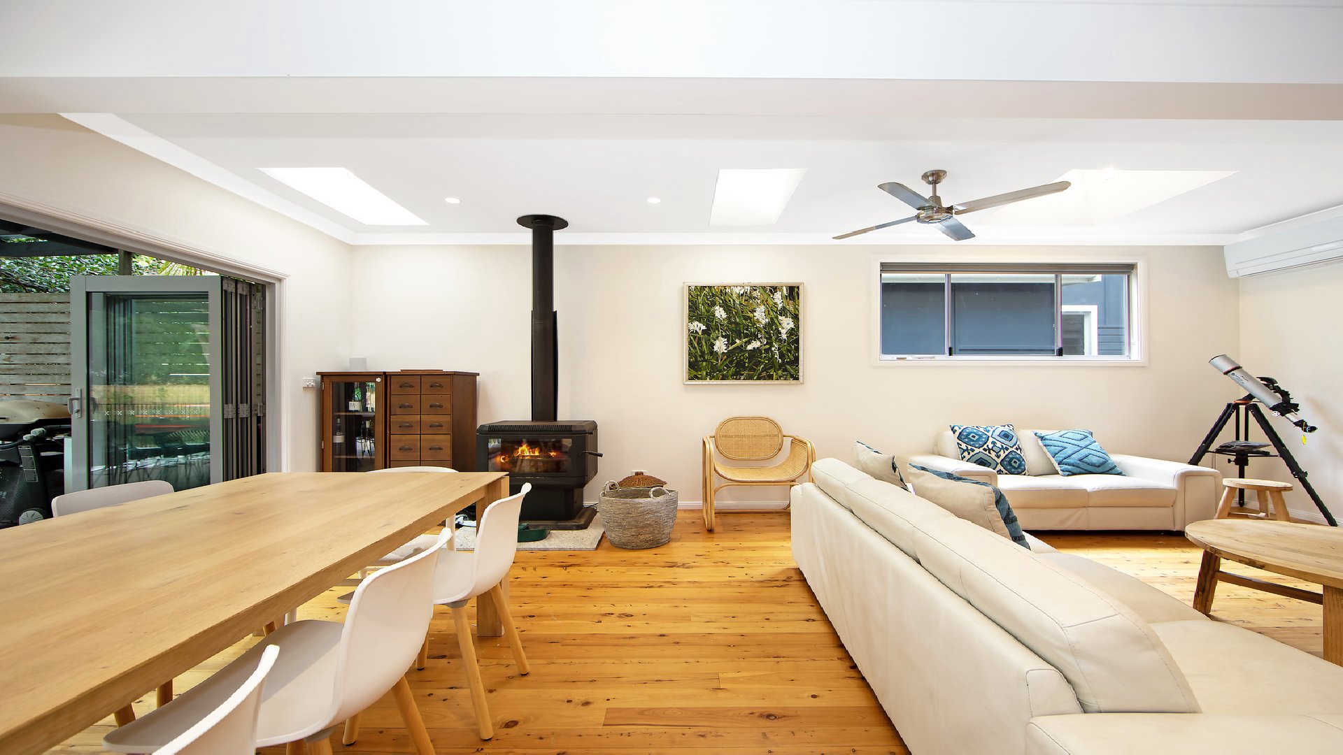 - Large covered outdoor entertaining deck, Weber BBQ, outdoor shower (hot water!)