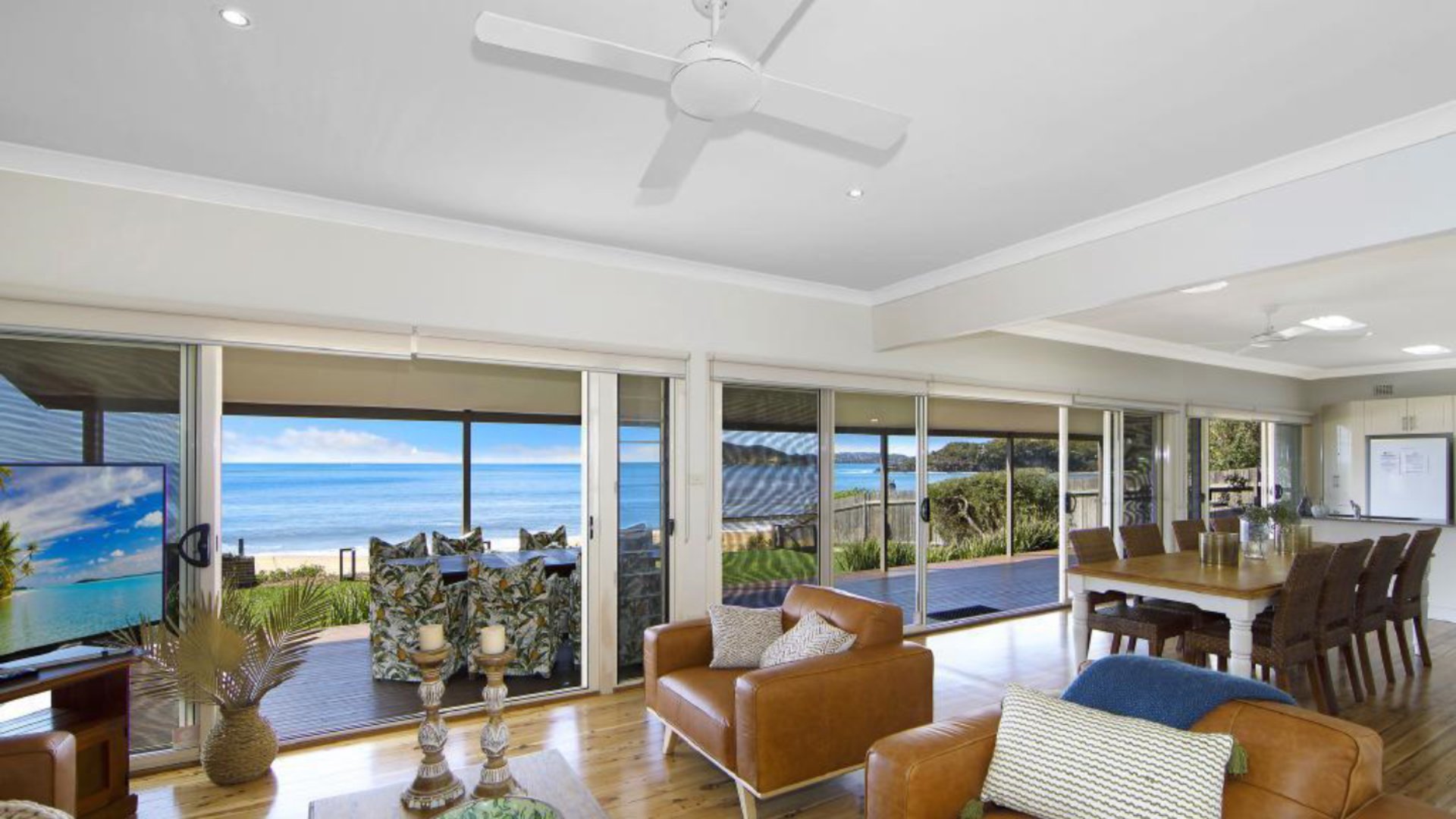 Commanding a north-facing beachfront location, Beachfront Beauty reflects simple coastal grace and living areas that flow seamlessly to the sun washed deck and directly onto the sand, offering an enviable beach lifestyle. The holiday house features timber flooring throughout; open plan living and caters to pet families with a fully fenced rear yard wanting a relaxing weekend away.