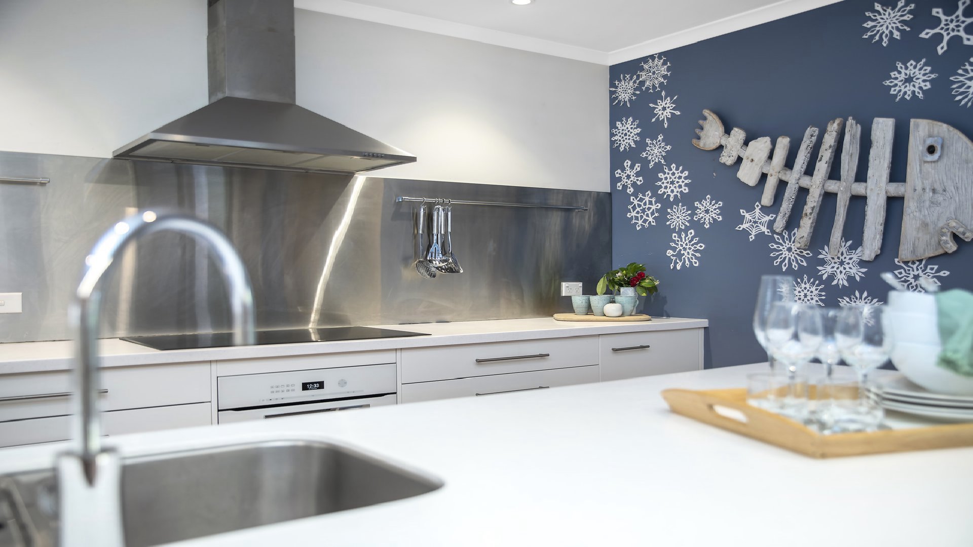 - Fully equipped kitchen with electric cooking, dishwasher, microwave, island bench